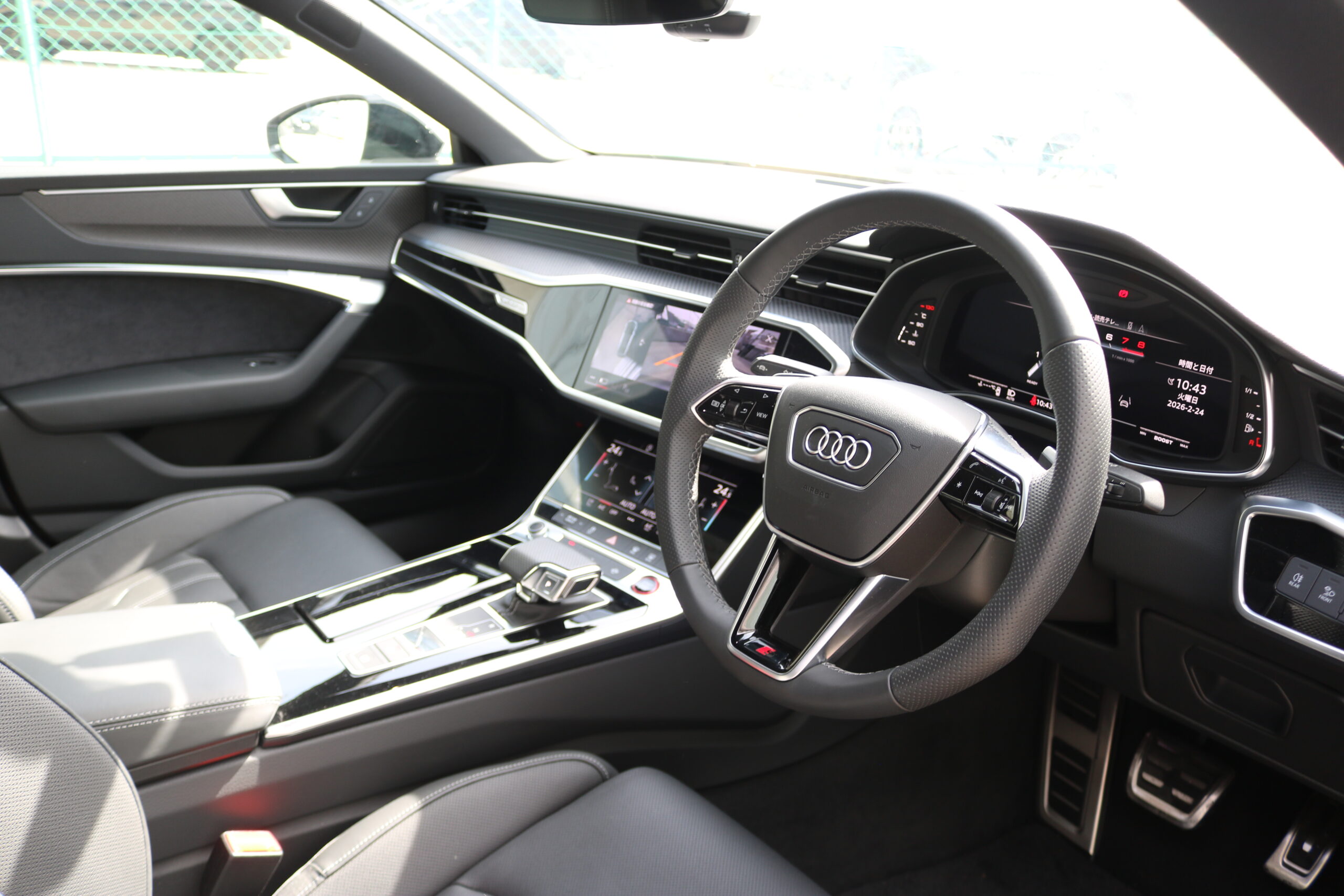 ユーザー買取車/ブラックスタイリングPKG/OP21インチAW/赤キャリパー/OPコンフォートバルコナ革シート/シートヒーター/OPカーボンツイルインパネ/OPワイヤレスチャージング/12.3インチバーチャルコックピット/MMIナビ&スマホインターフェイス/HDマトリクスLEDヘッドライト